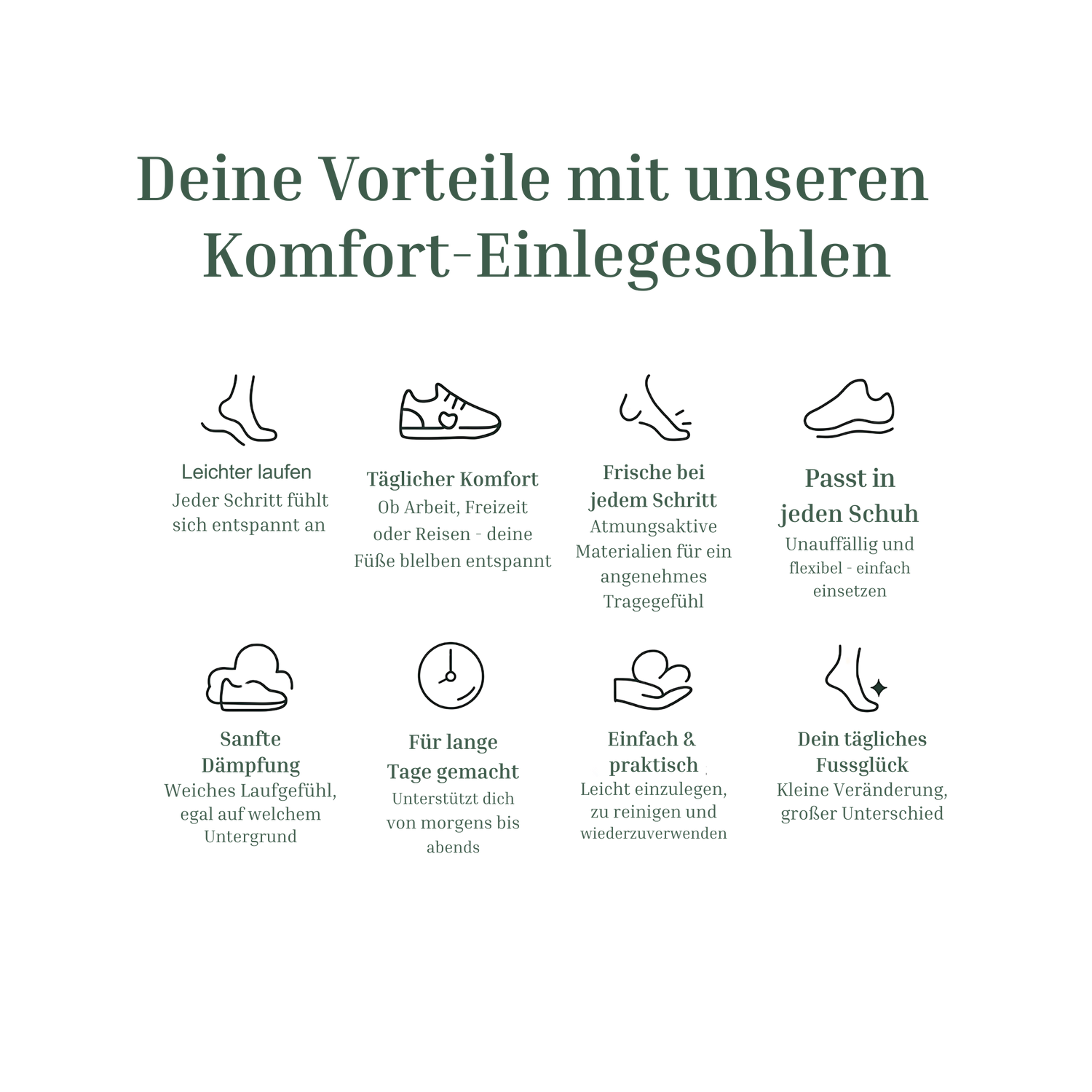 Unsere Einlegesohlen schenken dir Komfort, Leichtigkeit und Wohlbefinden